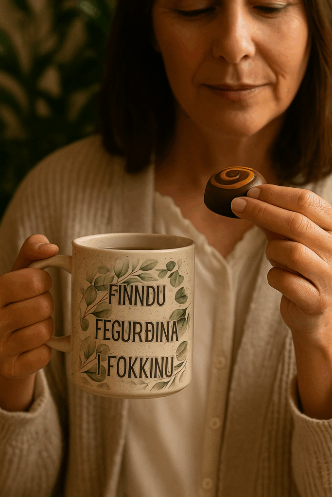 Fyrir konuna sem þráir ró, en hefur líka gaman af ruglinu. Þessa sem veit að jafnvægi er ekki alltaf lotusstelling og lofnarblóm, heldur stundum kaldur kaffibolli og djúpt andvarp.